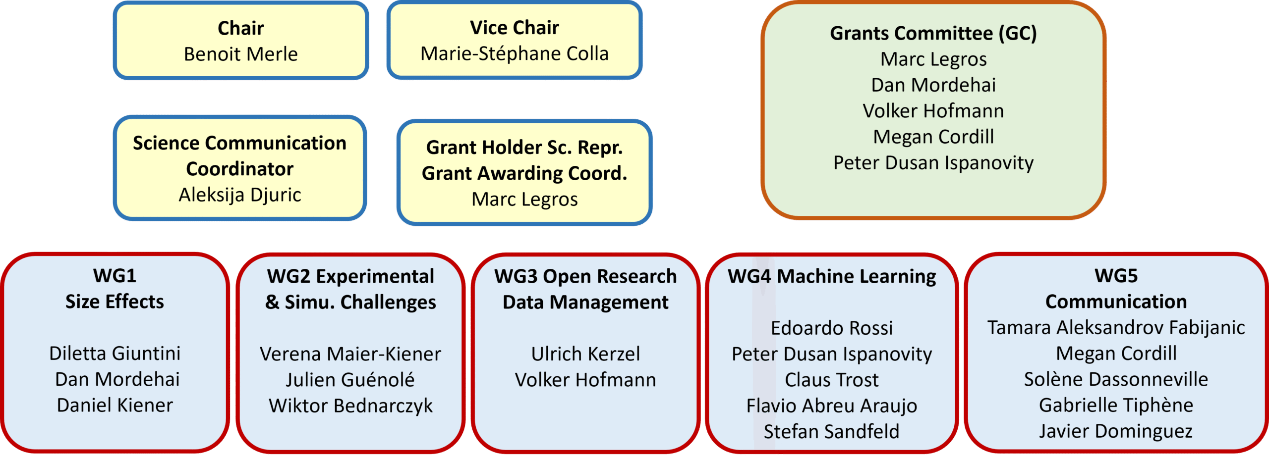 Besides the different committees, a Science Communication Coordinator (SCC) leads and coordinate activities of WG5.