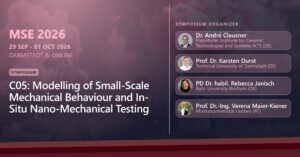 We are pleased to invite you to submit an abstract to Symposium C05: “Modelling of Small-Scale Mechanical Behaviour and In-Situ Nano-Mechanical Testing”, which will take place at the Materials Science and Engineering Conference (MSE) 2026 in Darmstadt, Germany from 29 Sept – 01 Oct 2026. https://mse-congress.de/